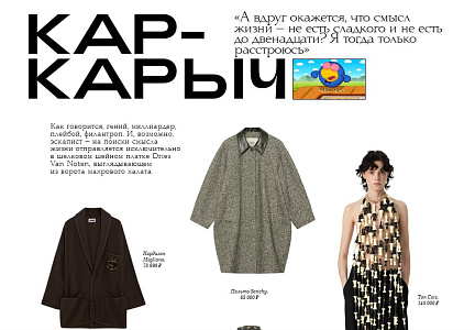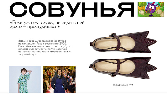Нелли Асриян из The Blueprint решила переосмыслить гардероб Смешариков. В результате – Карыч примерил шелковый шейный платок Dries Van Noten, Совунья – фартук от Prada (привет Миранде Пристли), Копатыч приоделся в комбинезон от Brunello Cucinelli, а неугомонный Крош – в кеды «Два мяча».