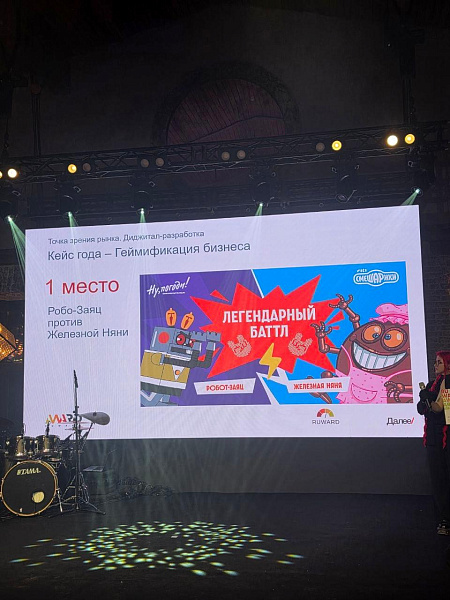 Совместная мобильная игра ГК «Рики» и студии «Союзмультфильм» «Железная няня против Робота-зайца» (разработчик «ТРАЙБ студия») заняла первое место в номинации «Кейс года — геймификация бизнеса» на четвертой ежегодной премии диджитал-рынка России Ruward Award 2026. Игровой проект «Битва роботов» объединил героев двух анимационных вселенных: Железную няню из «Смешариков» и Робота-зайца из «Ну, погоди!». За месяц пользователи провели более 80 тысяч матчей между этими персонажами. Коллаборация стала примером успешного кросс-медийного взаимодействия с узнаваемыми персонажами в цифровой среде.